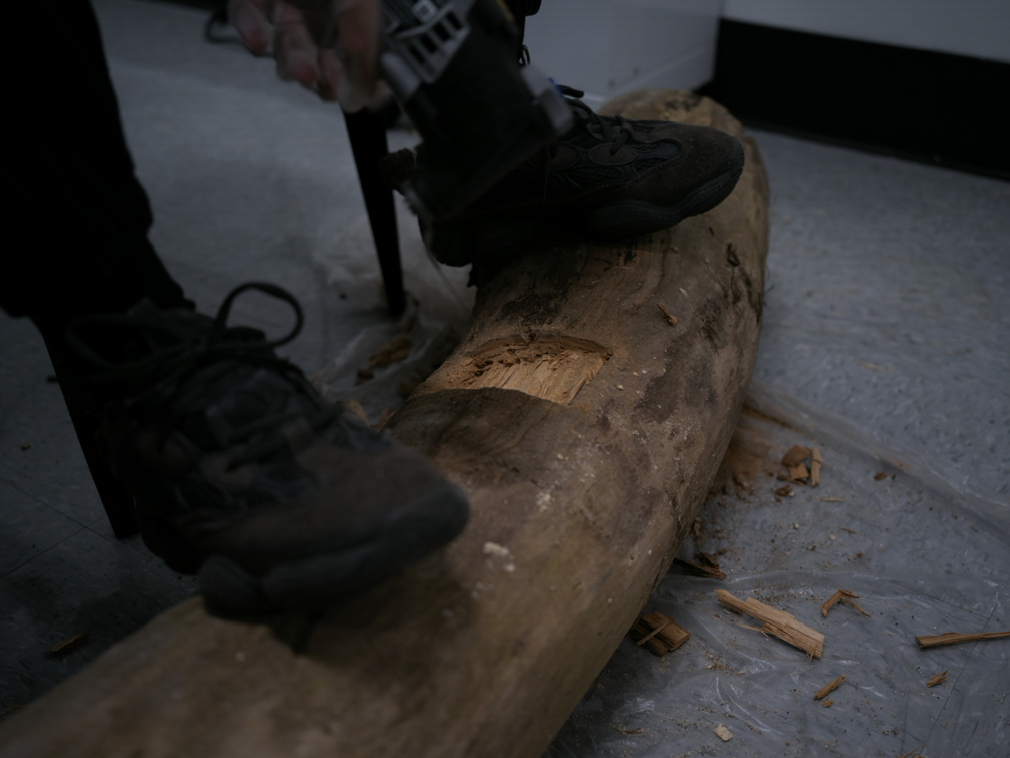 This installation explores the merging of nature and machine, blurring the line between the organic and artificial. A tree trunk, seamlessly fused with concrete, stands as a relic of coexistence and evolution within the urban landscape.